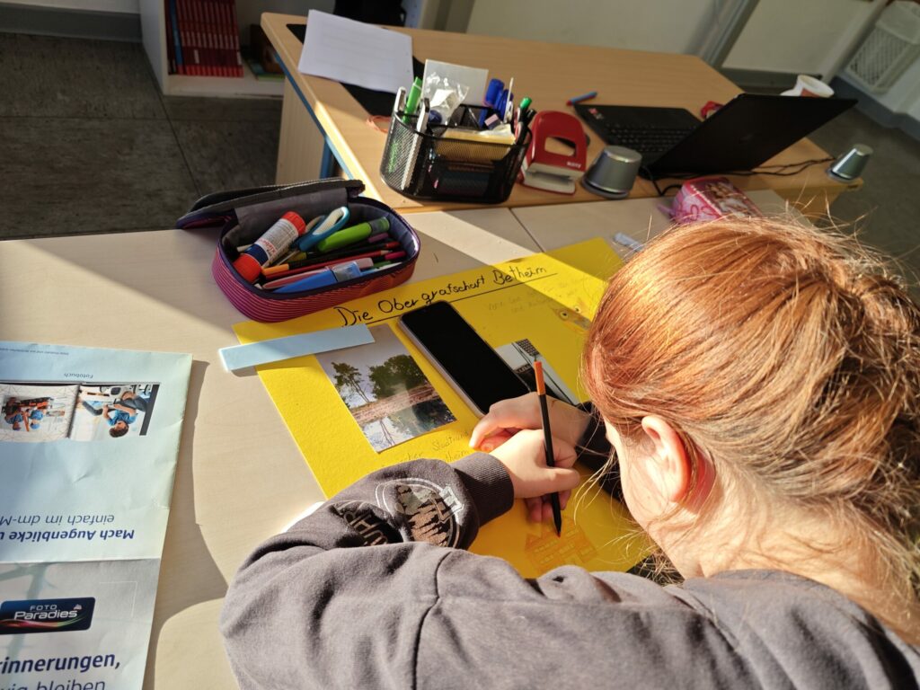 In die­sem Pro­jekte besuch­ten die Schü­le­rin­nen und Schü­ler Orte und Sehens­wür­dig­kei­ten von Gil­de­haus bis Schüt­torf und erstell­ten Videos und tolle Bil­der. Diese wur­den von ihnen dann in der Schule ent­we­der auf einem Pla­kat, in einer Bil­der­show oder auf einem Pla­kat vorgestellt.